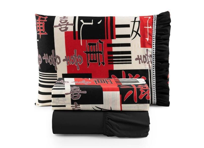 Jogo De Lençol Oriental Solteiro 3 Peças Algodão 180 Fios Estampado - Preto