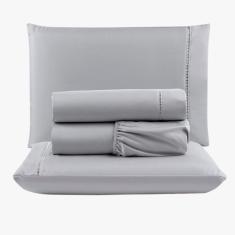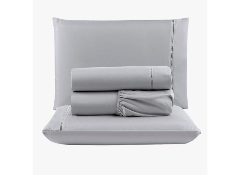 Jogo De Lençol Peletizado 400 Fios Casal 4 Peças Barato - Casa - Hotel - Pousada - Cinza