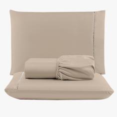 O menor preço encontrado no Brasil para Jogo de Lençol Peletizado 400 Fios King 3 Peças - Casa - Hotel - Pousada - Avelã atualmente é R$ 87,80.