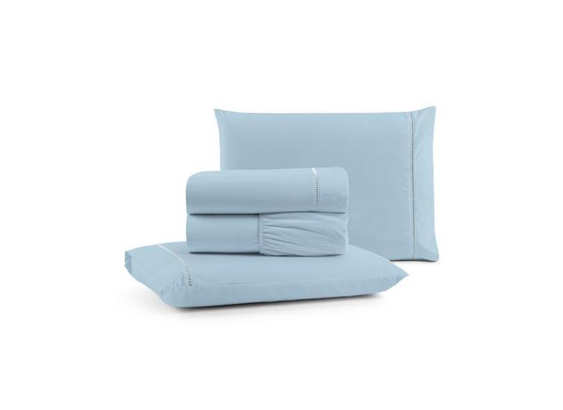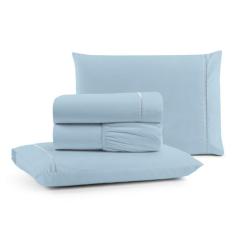 Jogo De Lençol Ponto Palito Casal 180 Fios 4 Peças - Azul - Santos E L