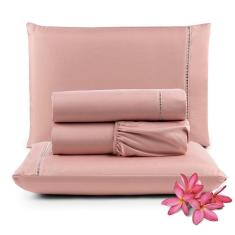 O menor preço encontrado no Brasil para Jogo de Lençol Primor Casal 4 Peças Percal 400 Fios Ponto Palito - Rosê atualmente é R$ 109,74.