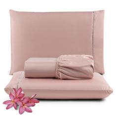Jogo De Lençol Primor King 3 Peças Percal 400 Fios Ponto Palito - Rosê