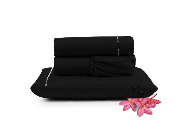 Jogo De Lençol Primor Solteiro 3 Peças Percal 400 Fios Ponto Palito - Preto