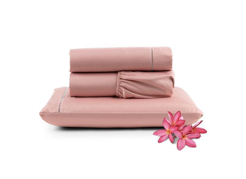 Jogo De Lençol Primor Solteiro 3 Peças Percal 400 Fios Ponto Palito - Rosê