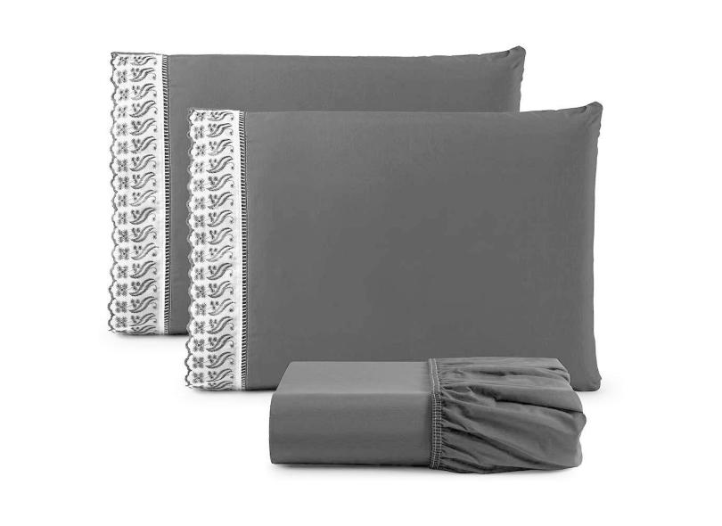O menor preço encontrado no Brasil para Jogo De Lençol Queen 3 Peças Basic Percal 180 Fios Lese Bordado Inglês - Preto atualmente é R$ 99,12.