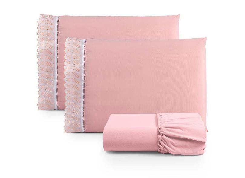 O menor preço encontrado no Brasil para Jogo De Lençol Queen 3 Peças Basic Percal 180 Fios Lese Bordado Inglês - Rosê atualmente é R$ 103,52.