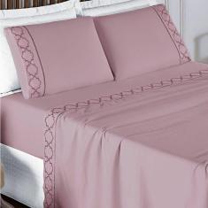 Jogo de Lençol Queen 300 Fios Bordado Infinity 4 peças - Palha