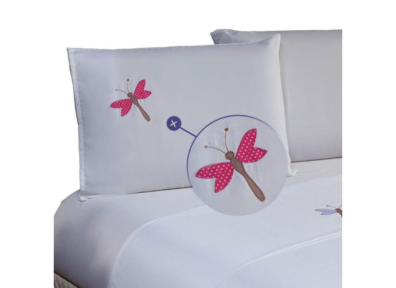 Jogo De Lençol Queen 4 Peças Bordado Libélula 100% Poliéster - Branco