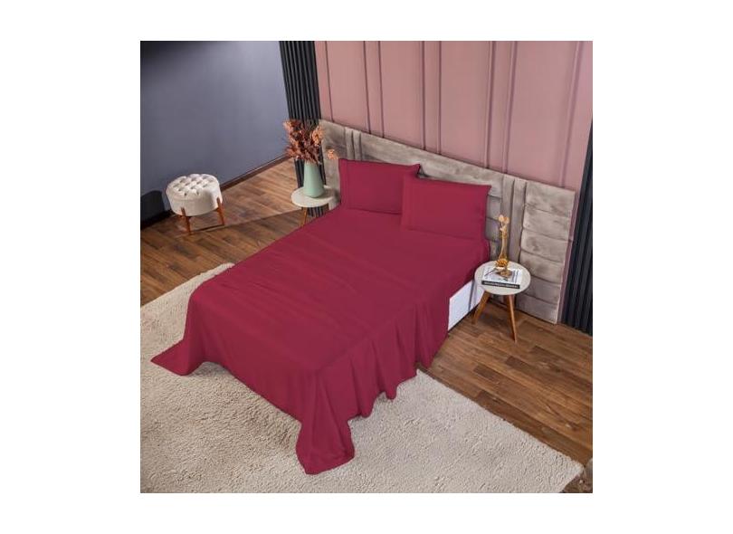 Jogo de Lençol Queen 400 Fios 4 Peças Toque Macio (Vermelho)