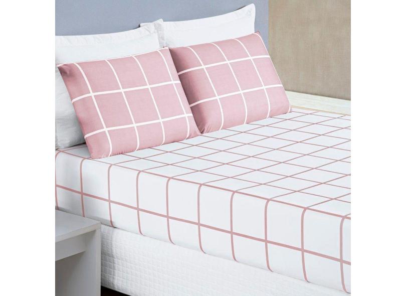 Jogo De Lençol Queen Austin Micropercal 200 Fios - 3 Peças Cor Xadrez Rosa