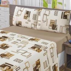 Jogo de Lençol Queen em Malha 100% Algodão 4 Peças - Avelã