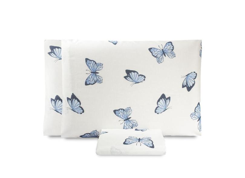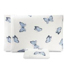 Jogo De Lençol Queen Essencialle 150 Fios 3 Peças Borboletas Azuis