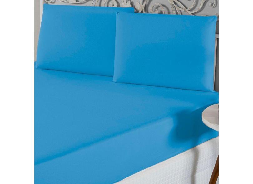 Jogo De Lençol Queen Malha 100% Algodão 3 Peças Cor Azul Turquesa