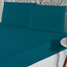 Jogo de Lençol Queen Malha 100% Algodão 3 Peças - Petroleo