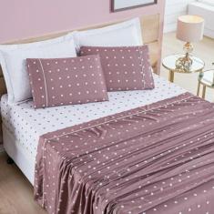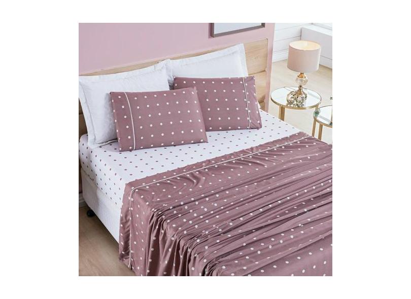 Jogo De Lençol Queen Petit Poa 200 Fios 4 Peças - Rose - Bia Enxovais