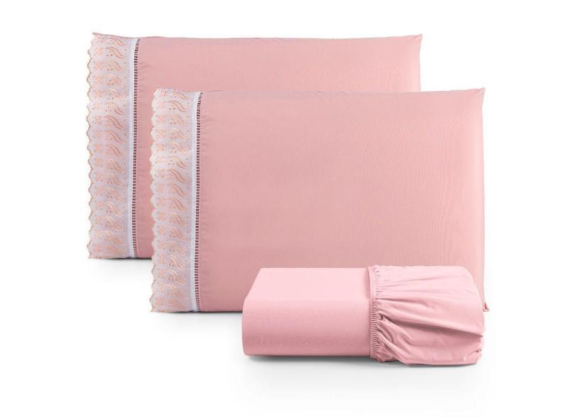 Jogo De Lençol Queen Suave Barrado Lese 3 Peças Barato - Rosê