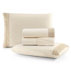 O menor preço encontrado no Brasil para Jogo De Lençol Queen Suavitec Com Grippir 4 Peças - Palha - Casa Show atualmente é R$ 252,77.