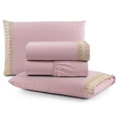 Jogo De Lençol Queen Suavitec Com Grippir 4 Peças - Rosê