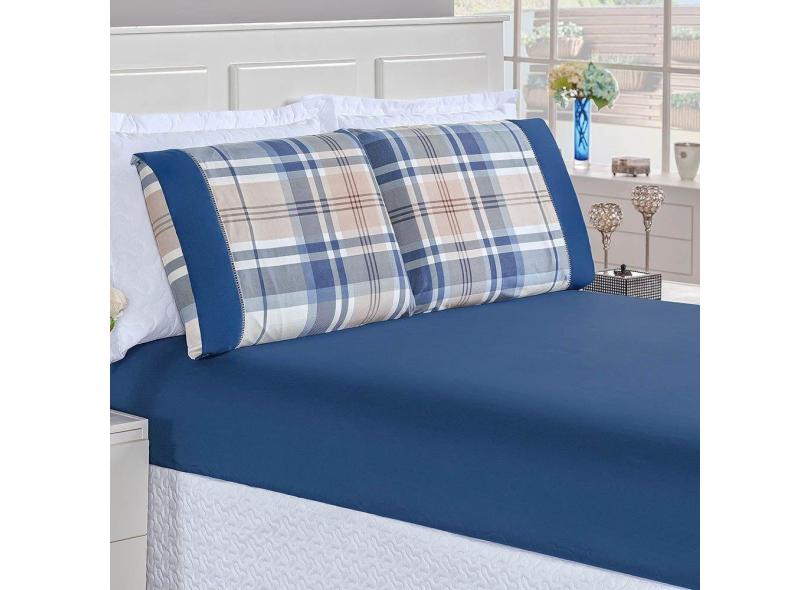 Jogo De Lençol Real King 3 Peças Micropercal 200 Fios Ponto Palito Estampado - Azul Titânio