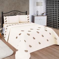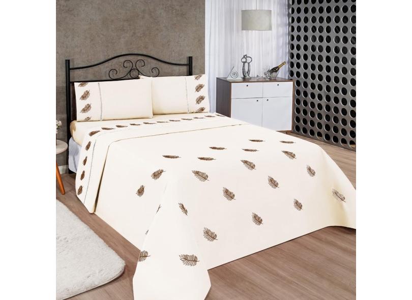 Jogo de Lençol Realeza Micropercal Bordado Solteiro 3 Peças - Palha