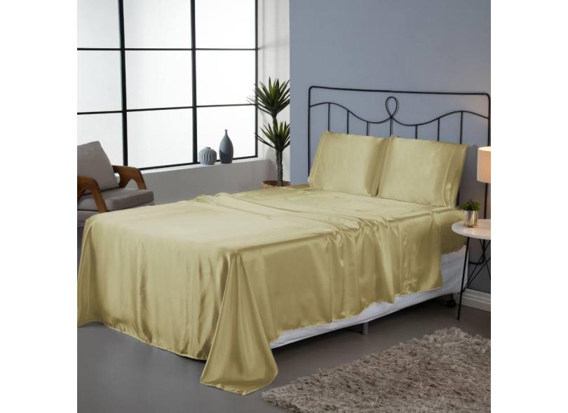 Jogo de Lençol Roupa de Cama Casal King Size 4 Peças Cetim Charmousse Antifrizz Seda