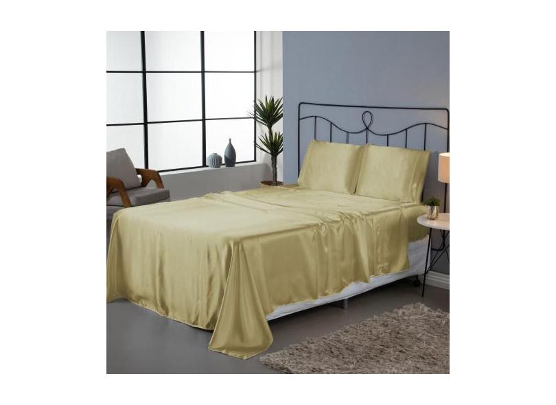 Jogo De Lençol Roupa De Cama Casal Padrão 4 Peças Cetim Charmousse Ant
