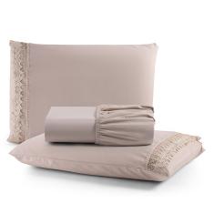 O menor preço encontrado no Brasil para Jogo De Lençol Rubi Casal 3 Pçs 100% Algodão 200 Fios Ponto Palito Bordado - Avelã atualmente é R$ 116,90.