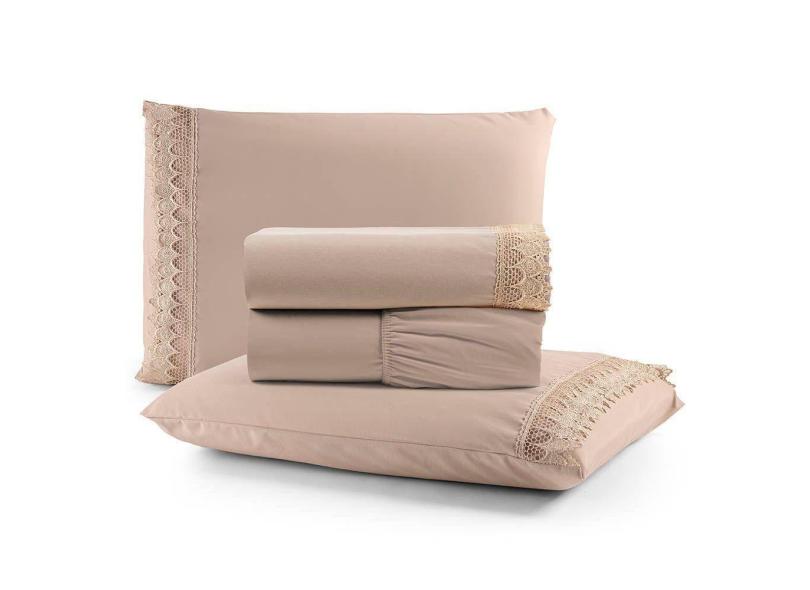 O menor preço encontrado no Brasil para Jogo De Lençol Rubi King 4 Pçs 100% Algodão 200 Fios Ponto Palito Bordado - Avelã atualmente é R$ 305,00.