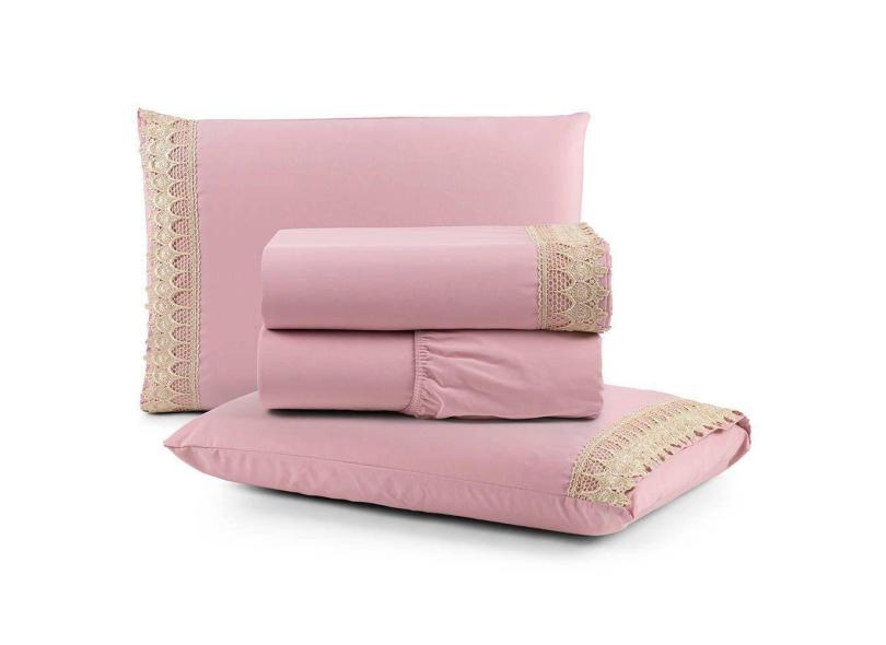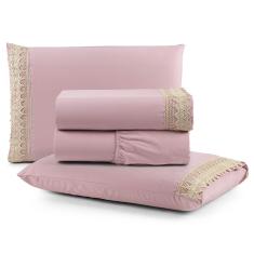 Jogo De Lençol Rubi King 4 Pçs 100% Algodão 200 Fios Ponto Palito Bordado - Rosê