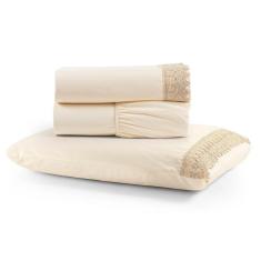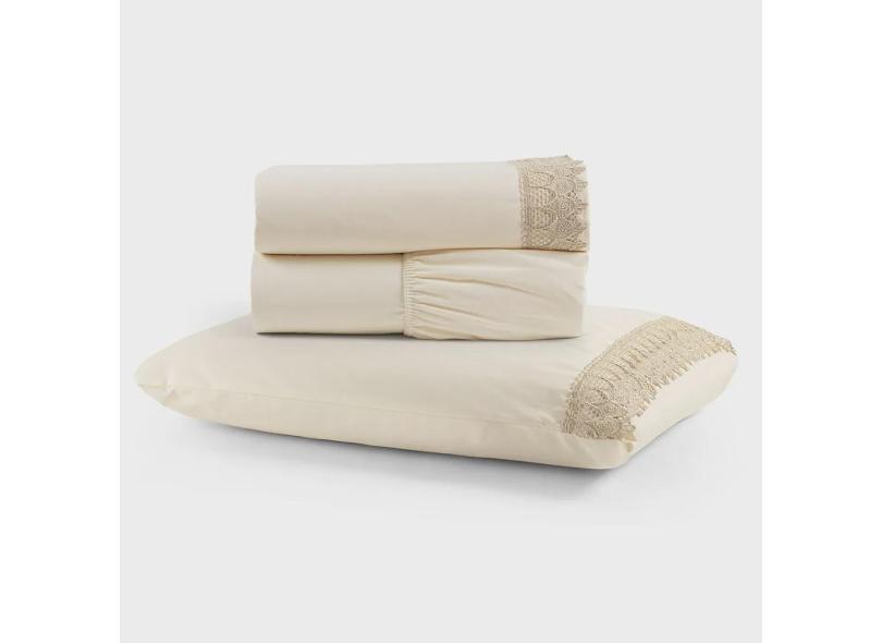 Jogo de Lençol Rubi Solteiro 3 Pçs 100% Algodão 200 Fios Ponto Palito Bordado - Palha