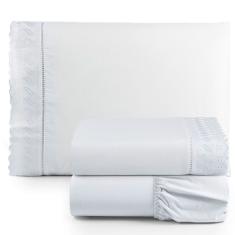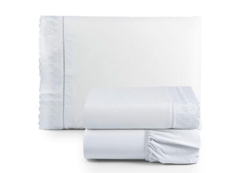 Jogo De Lençol Solteiro 3 Peças Basic Percal 180 Fios Lese Bordado Inglês - Branco