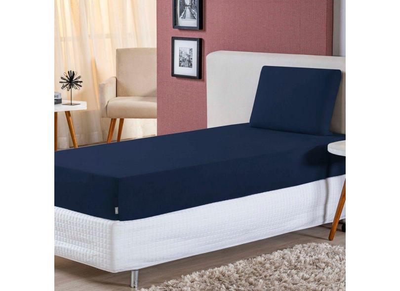 Jogo De Lençol Solteiro Malha 100% Algodão 2 Peças Cor Azul Marinho
