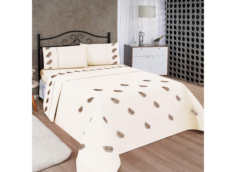 Jogo de Lençol Solteiro Realeza Micropercal Bordado 2 Peças - Palha