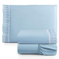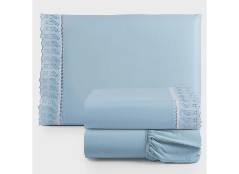 Jogo De Lençol Suave Lese Percal 180 Fios Solteiro 3 Peças Barato - Azul