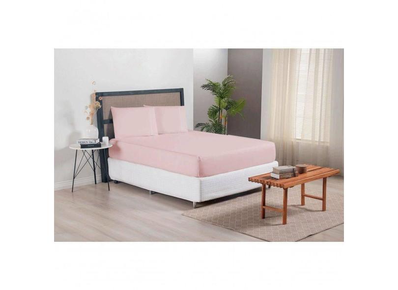 Jogo De Lençol Versatile Ponto Palito Simples 3 Peças Casal Micropercal rosê