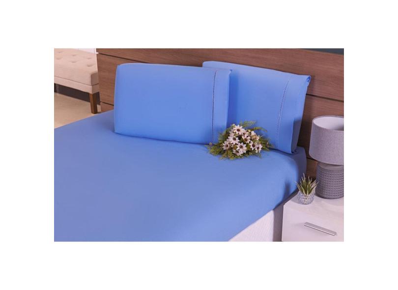 Jogo Lençol 3 Peças Cama Viúva 1,28X1,88M 200 Fios Azul