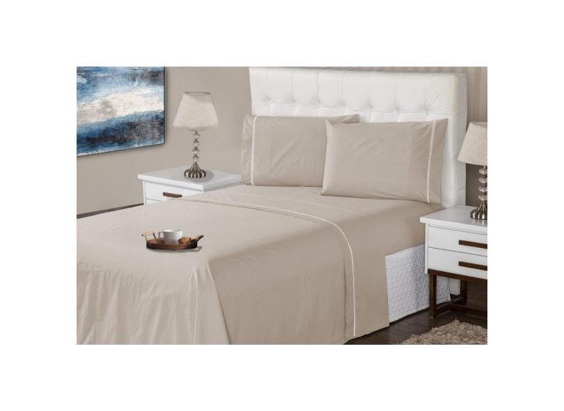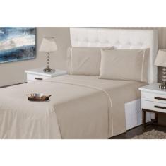 Jogo Lençol 3 Peças Casal 400 Fios Marfim Ponto Palito Casa Dona