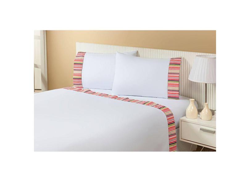 Jogo Lençol 4 Peças Cama Viúva 1,88mx1,28mx25cm 100% Algodão 200 Fios Ponto Palito Listrado