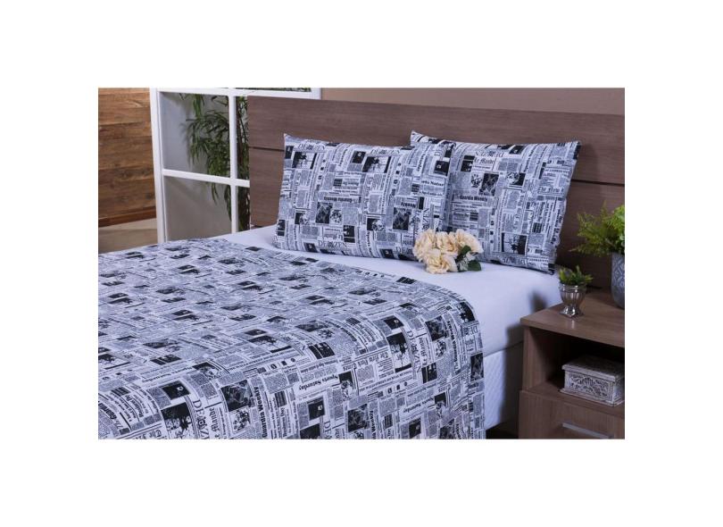 Jogo Lençol 4 Peças Cama Viúva Percal 150Fios Estampa Jornal