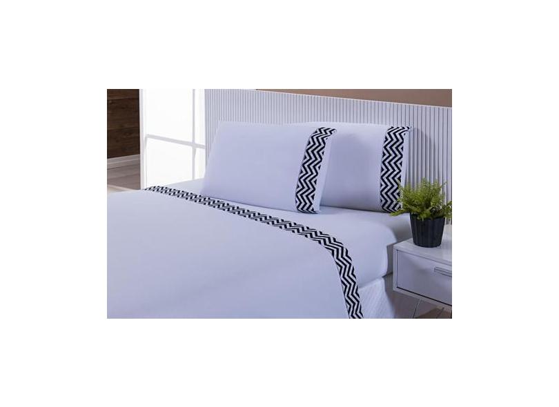 Jogo Lençol 4 Peças Cama Viúva Percal 200Fios Branco Chevron - Thais E