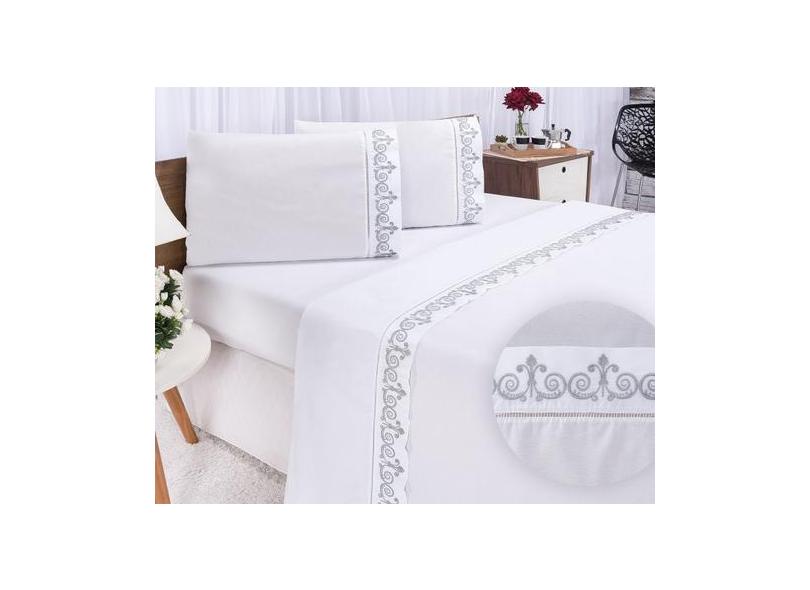 Jogo Lençol Atenas Quarto Casal Queen Bordado 4 Peças 2Fronha - Shoppi
