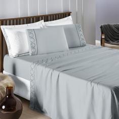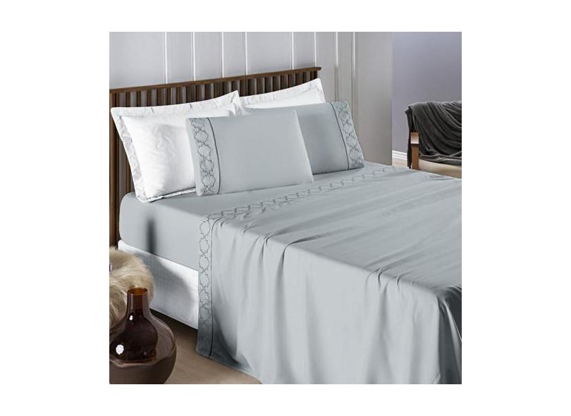 Jogo Lençol Bordado Titanium Padrão 4 Peças Barato - Cinza - Casa Show