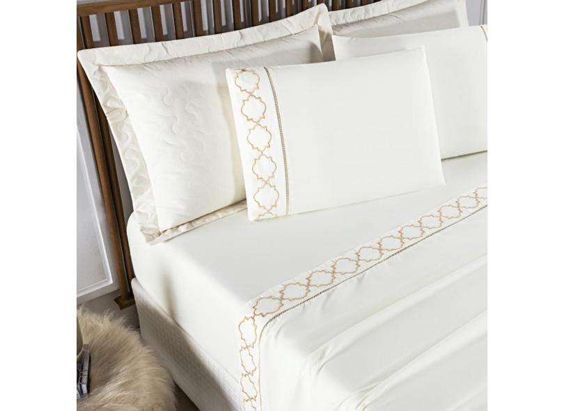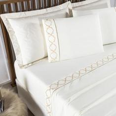 Jogo Lençol Bordado Titanium Padrão 4 Peças Barato - Palha