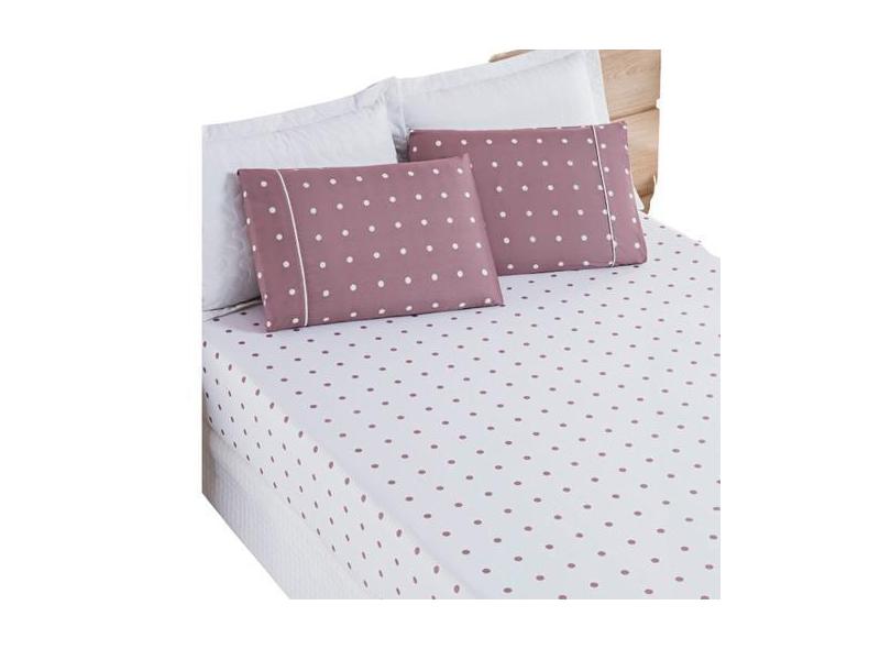 Jogo Lençol Cama Casal 3 peças Micropercal 200 fios Petit Poá - Bia En