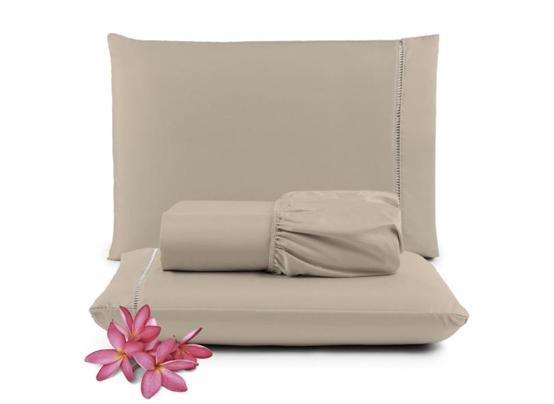 Jogo Lençol Casal 3 Peças Ponto Palito 400 Fios Micropercal