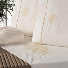Jogo Lençol Casal Bordado Crivo 4 Peças 100% Algodão 200 Fios - Ingrid