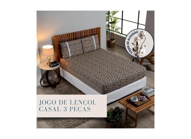 Jogo Lençol Casal Estampado Elástico Malha 100% Algodão - Meta Mark, O