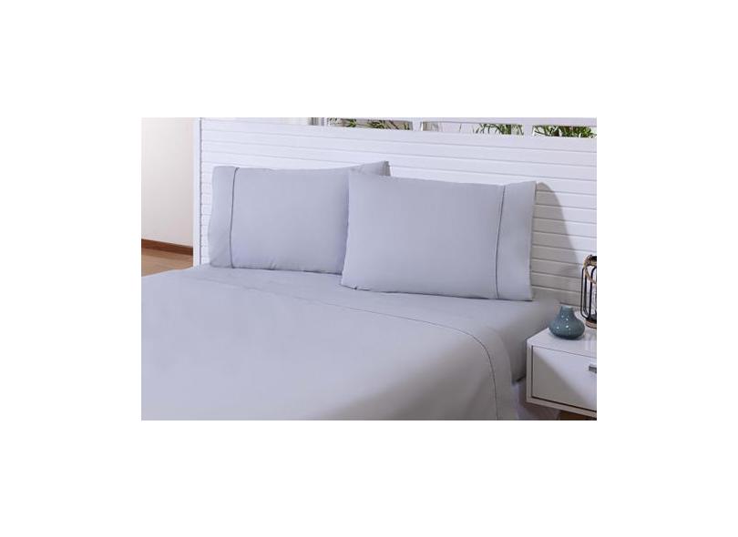 Jogo Lençol Casal Ponto Palito 4 PC 100% Algodão 180 Fios Cinza - MIGU