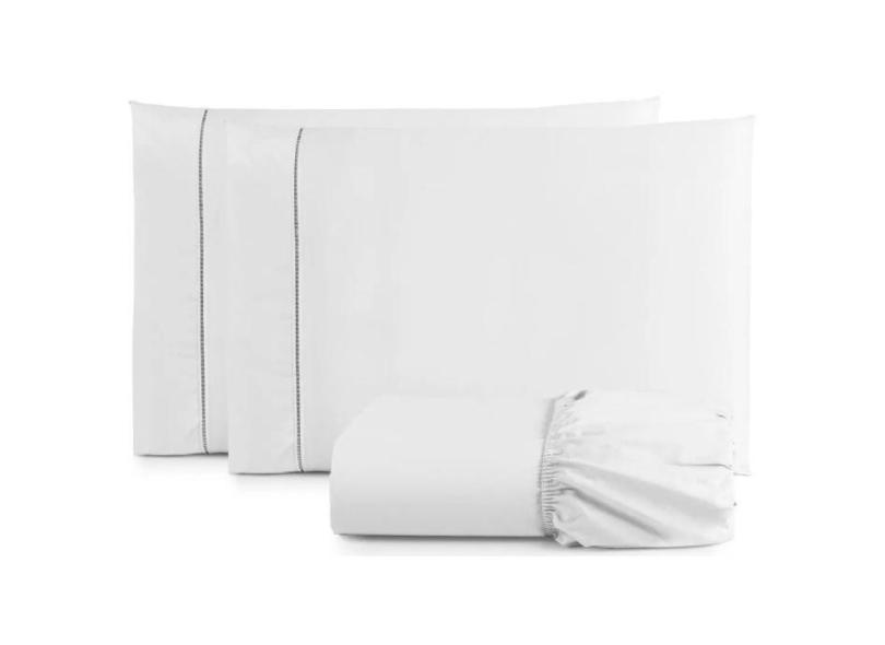 O menor preço encontrado no Brasil para Jogo Lençol Casal Queen 3 Peças Cama Box Ponto Palito 400 Fios Branco atualmente é R$ 128,99.