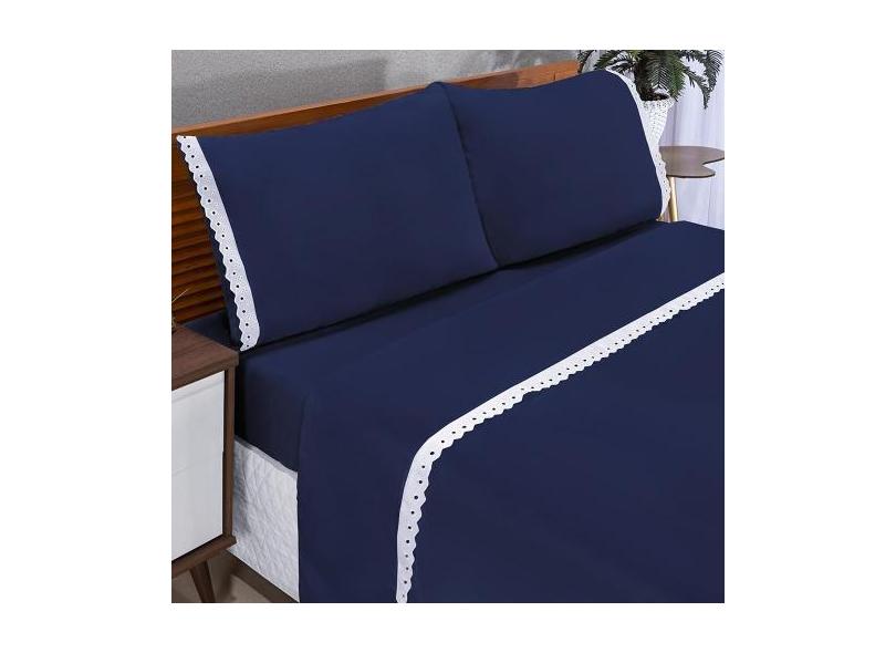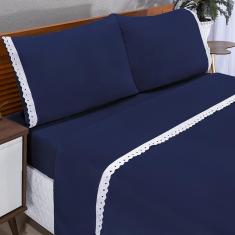 O menor preço encontrado no Brasil para Jogo Lençol Casal Queen Microfibra Lese 4 Peças Azul Marinho - Bordado atualmente é R$ 83,66.